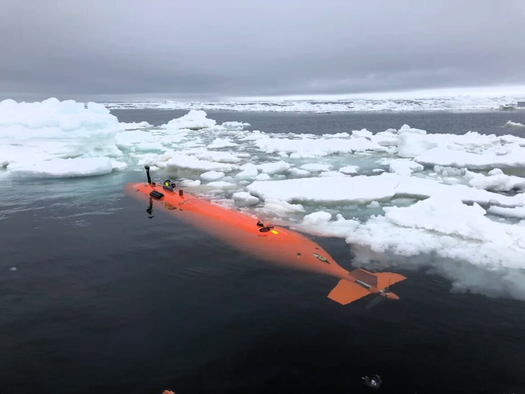Rán, sjálfstýrður neðansjávardróni af gerðinni Kongsberg HUGIN, nálægt Thwaites-jökli eftir 20 klukkustunda leiðangur við kortlagningu hafsbotnsins. Anna Wåhlin/Háskólinn í Gautaborg