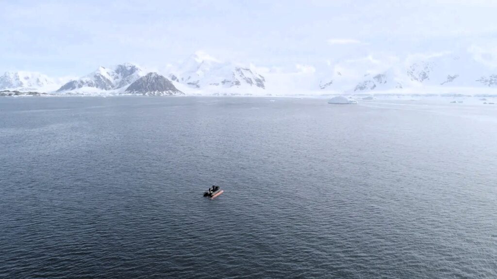 Vinnubátur sækir Rán, sjálfstýrða drónann, í einum af fjörðum Suðurskautsskagans í leiðangrinum að Thwaites-jökli árið 2019. Alexandra Mazur/Háskólinn í Gautaborg