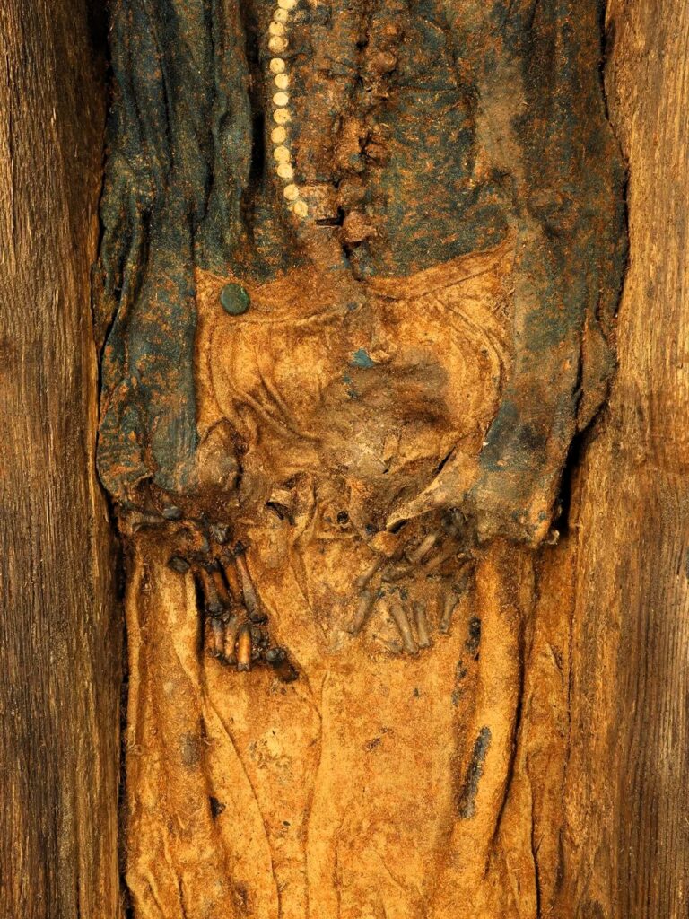 Líkkisturnar eru að falla saman og þar með komast bein- og vefnaðarleifar í snertingu við set, vatn og súrefni.